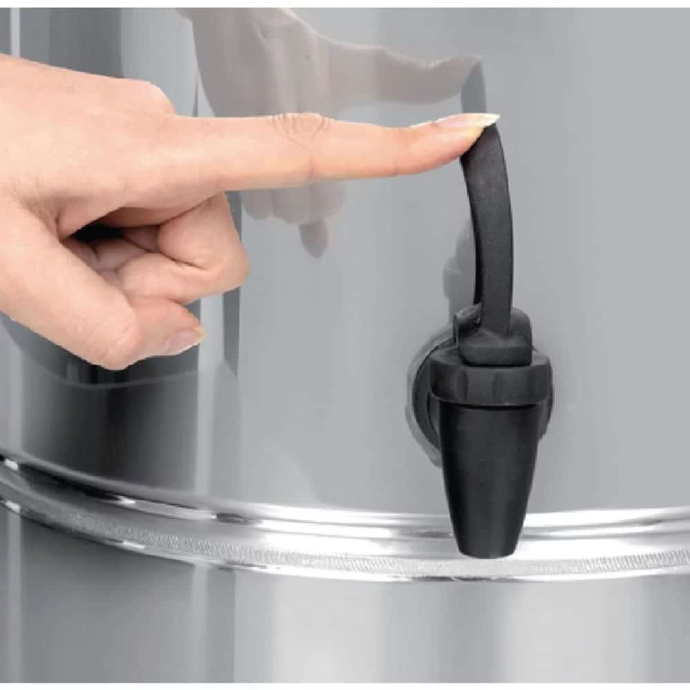 10 litre manual fill water boiler provides convenient, portable access to piping hot water without the need for hardwiring or mains plumbing. Perfect for staff rooms, waiting areas, site offices, mobile catering and many others, the Burco hot water urn features a powerful 3kW element to quickly heat water to the required temperature, regulated using the durable dial thermostat control.