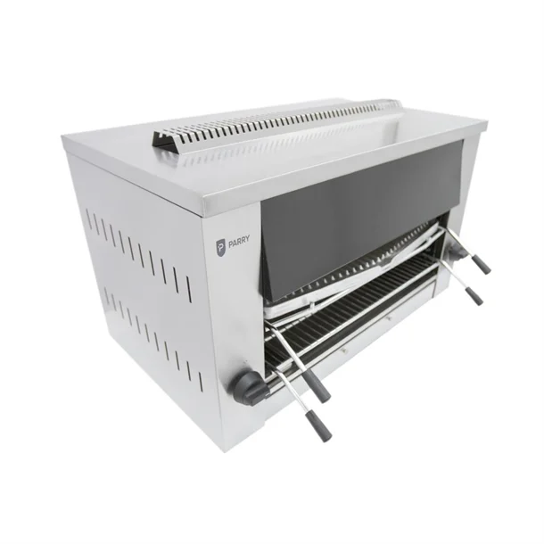 The Parry US9 LPG Gas Salamander Wall Grill offers user-friendly operation with its adjustable flame and dual temperature zones. Designed for powerful and reliable performance, it excels in cooking fish, vegetables, or melting cheese. Crafted for durability and ease of maintenance, this high-quality appliance features individually controlled dual-zone cooking, automatic ignition, and thermostatic control.