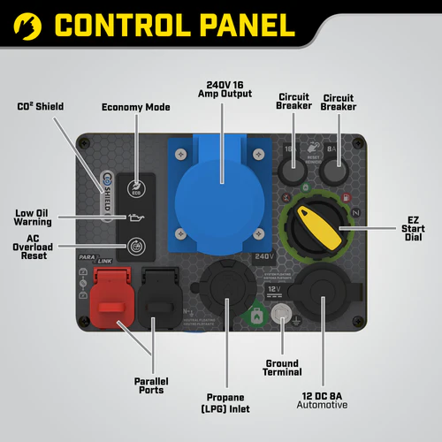 Champion’s 3000 watt dual fuel inverter generator is one of the lightest in the industry at only 21.5kg, making portable power easier than ever! Rely on the 149cc engine with a quiet 58 dBA for up to 11.5 hours of run time on petrol or up to 34 hours* with propane. CO Shield® technology monitors the accumulation of carbon monoxide (CO), a poisonous gas produced by engine exhaust when the generator is running. If CO Shield detects unsafe elevated levels of CO gas, it automatically shuts off the engine.
