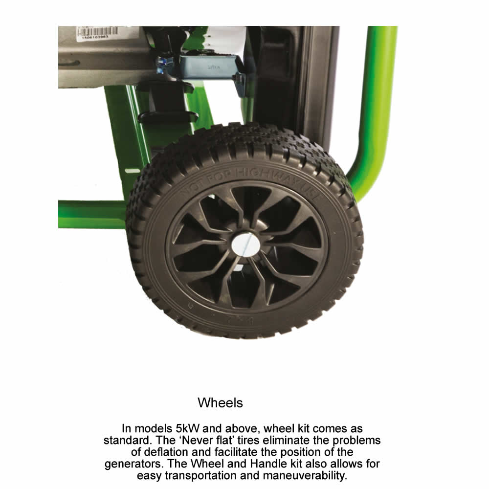 - Dimensions: 70 cm x 53 cm x 50 cm / 27.5” x 20.8” x 19.6” -for the width of the 5kW Generator. Frame only – 540mm With wheels – 660mm