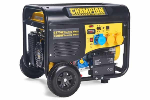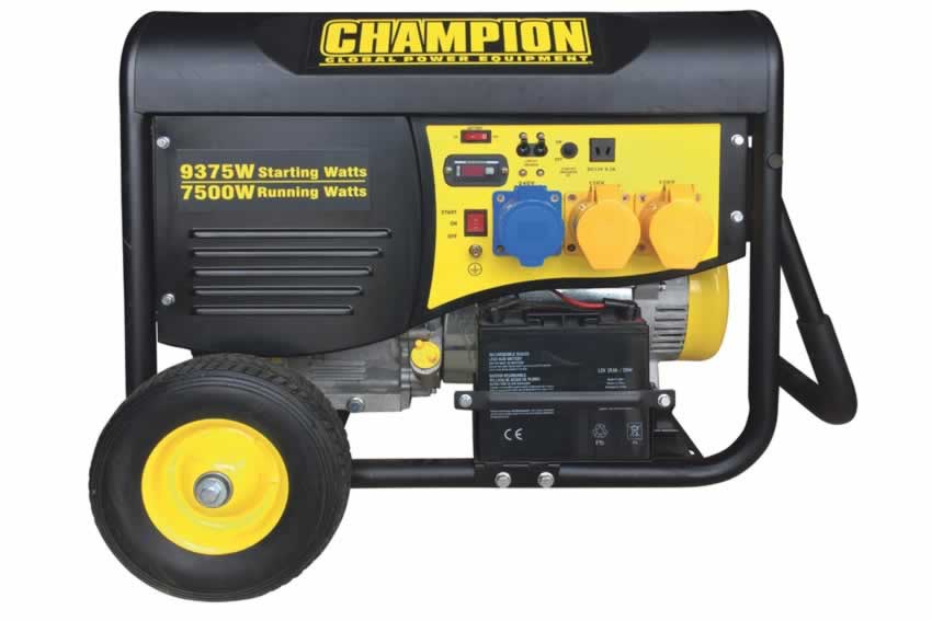 The Champion Power Equipment CPG9000E2 portable electric start petrol generator is powered by a 15hp 459cc Champion single cylinder, 4-stroke OHV engine that produces 7500 running watts and 9375 starting watts. With a 25 litre fuel tank this unit can run up to 10 hours at 50% load. Our OHV engine is equipped with a low oil shut-off sensor and designed for long life and easy maintenance. This unit is ideal for construction work-building sites, power tools, jobs around the house, trailers, travelling, or even home back-up power during emergencies