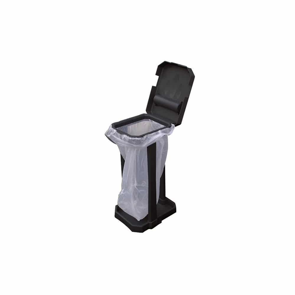 Foldable and portable large capacity bin is great for events, mobile catering camping and home use. Can take either normal or large bin liners since these are secured in the lid. This Eco Bin has a compact design, is easy to install and features a unique bin bag storage holder housed in the lid plus can be folded flat for easy storage. It comes complete with bin liners to help you get started and incorporates a pair of carrier bag securing lugs allowing separate bags for recycling. It also has a moulded base with a tray that helps to contain any spillages and twin peg points for securing on uneven ground.