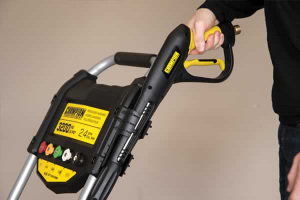 Champion’s dolly-style design along with the 30cm never-flat tires make this pressure washer easy to maneuver. The cleverly designed onboard storage for the pressure hose, trigger gun and spray wand ensure you’ll have what you need when you need it, plus you’ll be able to keep moving without having to stop and put things away.