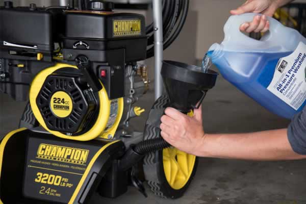 Champion’s 3200-PSI Gas Pressure Washer with 9 LPM features five nozzles, two detergent tanks, a 7.6m high-pressure hose, comfort-grip gun and an axial cam pump for consistent cleaning. This Dolly Style Gas Powered Pressure Washer with Annovi Reverberi Axial Cam Pump provides cost effective, “do-it-yourself” cleaning power.